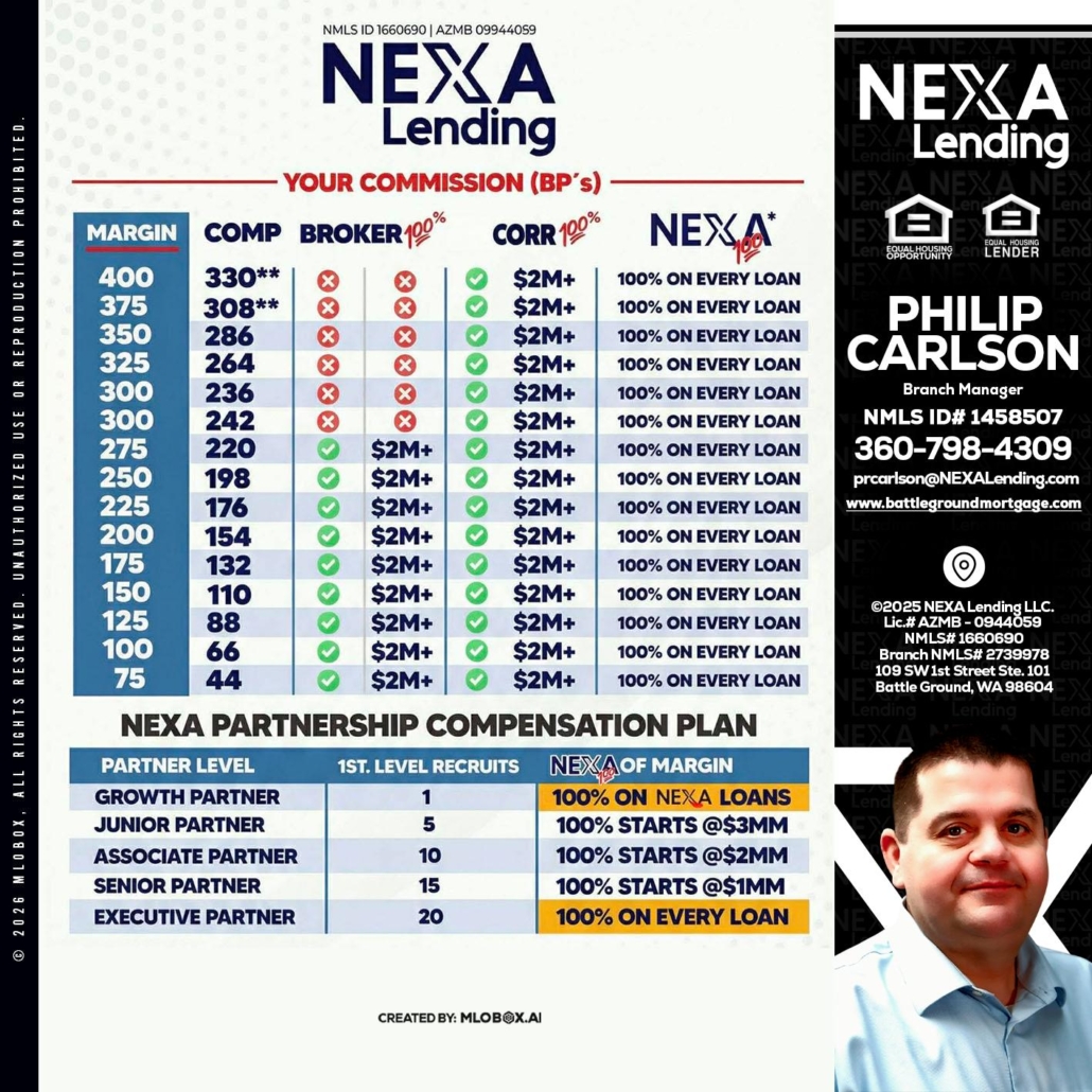 COMP - Philip Carlson -Branch ManagerHi, my name is Philip Carlson. I’m a Loan Officer with NEXA Lending LLC., offering personalized mortgage solutions, fast customized quotes, great rates and service with integrity.