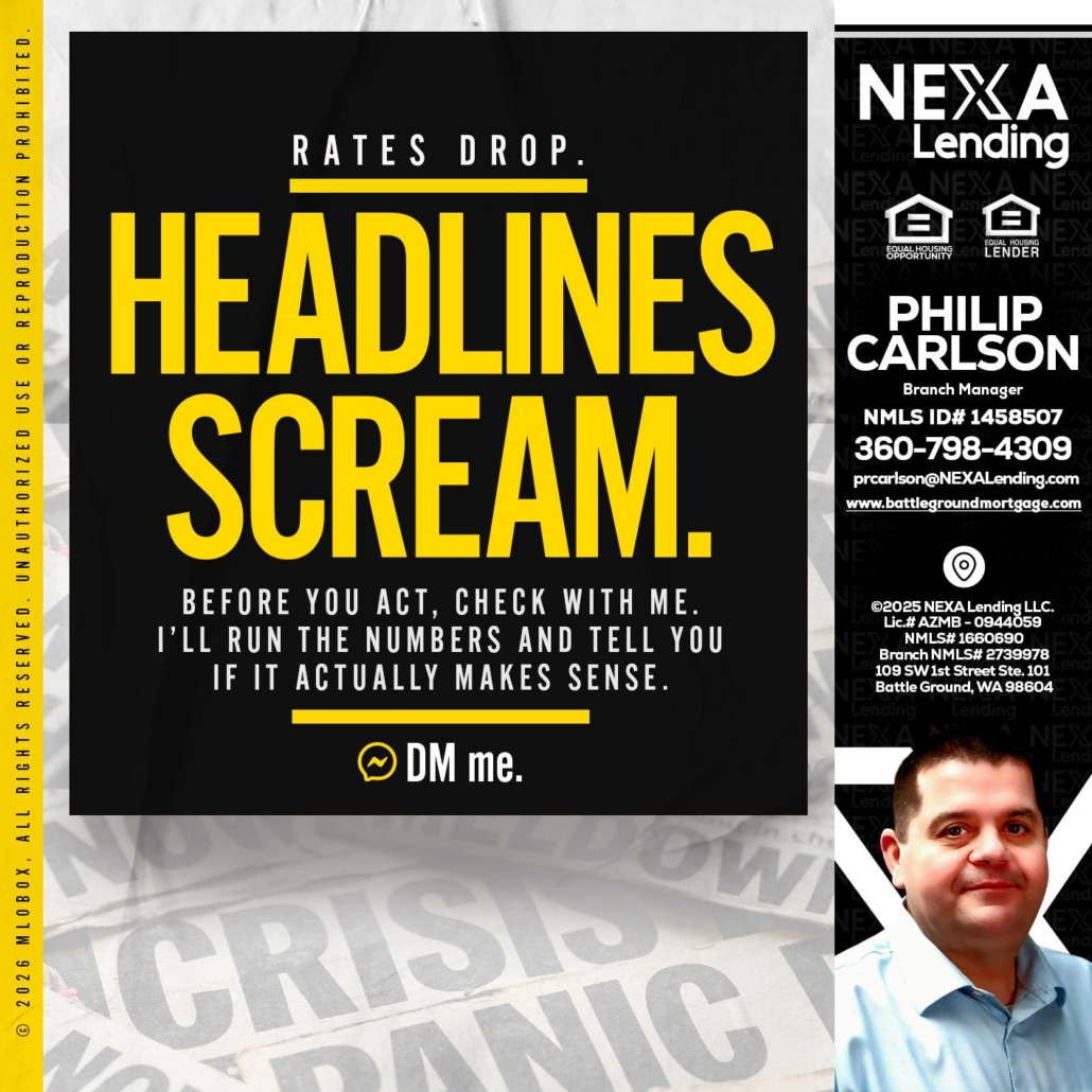 HEADLINES SCREAM - Philip Carlson -Branch ManagerHi, my name is Philip Carlson. I’m a Loan Officer with NEXA Lending LLC., offering personalized mortgage solutions, fast customized quotes, great rates and service with integrity.